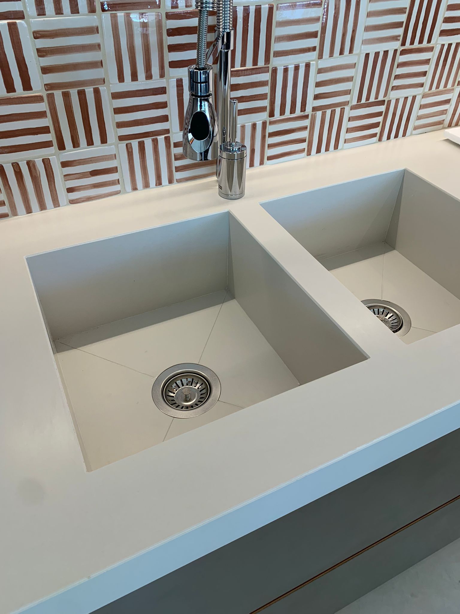 Top cucina realizzato in Lapitec Bianco Polare Satin con lavelli integrati.